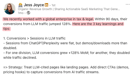 Kevin Indig is an accomplished dude. But there’s a reason he posts things like this, not “hey everyone look how great I am!”👇