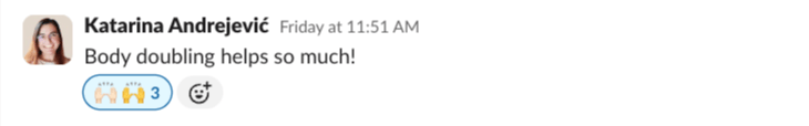 Katarina is a big fan of body doubling (hopping on a video call with someone else and working “alongside” them).