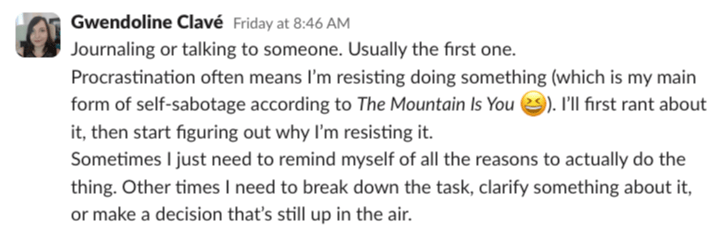 Gwendoline has some great advice for anyone looking to process why it is they’re dragging their heels on a task: