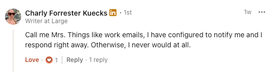 Charly has to respond to work emails straight away, or she forgets about them (same!):
